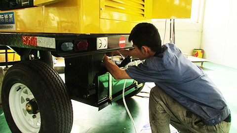 清晨,還沒有到上班的時間,華全動力的兩名機組實驗員工就已經忙碌在自己的工作崗位上了。從他們熟練的動作和專注的眼神中,我們看出了一份責任,一份對工作的責任,也是對客戶的責任。他們就是華全的質量檢驗員——宋春龍和畢研強。他們正在全面檢測一臺100kw玉柴防雨棚拖車發電機組。