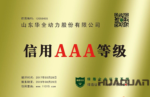 國內的第三方大數據征信平臺——綠盾全國企業征信系統于日前發布了近期獲評誠信AAA級的企業名單,山東華全動力股份有限公司榜上有名。3月28日,華全動力正式獲得了綠盾全國企業征信系統頒發的信用AAA級證書和牌匾。
