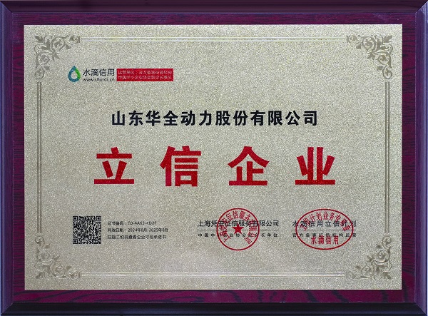榮譽的獲得不僅是對華全動力綜合實力的肯定,更是對其誠信經營的見證,同時也為公司未來的生產經營提供了更大的助力。